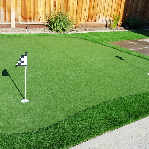 Pro Putt-44 was specifically designed with one thing in mind: ball speed. Measuring speed with a Stimpmeter, without infill, ball speed is averaged at about 8-9. With infill, ball speed can go up to 14. The more infill, the faster the speed. And with a pile height of 1/2" and face weight 44 oz.yd2, Pro Putt-44 is ideal for putting greens all across America. Its color looks natural and realistic and it's beautiful green tone blends very well with a wide variety of artificial grass combinations for fringes, lawns, and landscapes for practice greens at golf courses, hotels, and resorts, or backyards. Pro Putt-44 looks just like real grass and can enhance any environment.