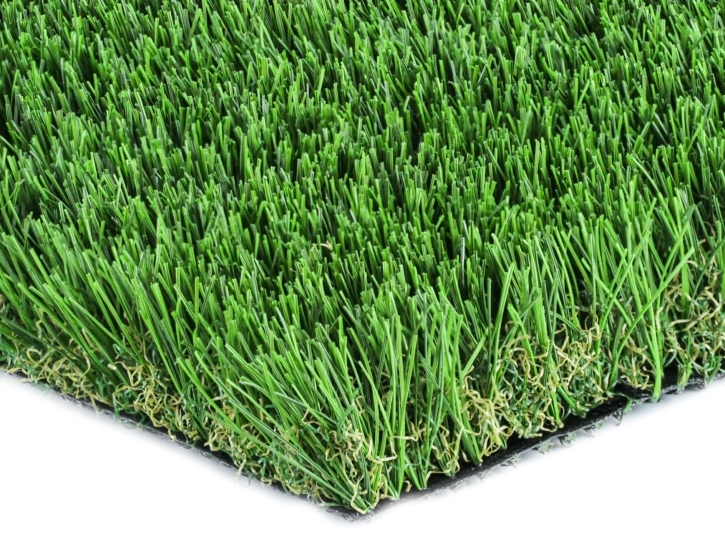 Ideal for pet areas, school playgrounds, and all landscape types, Riviera Monterey-65 features an "M" shaped blade that allows color to fall between its shape, creating a fresh grown and natural grass look. It's pile height of 1 3/4" and a 65 oz./yd2 face weight acts as a foundation for its silky, firm fibers offered in emerald green and lime green colors. Combined with brown and green curled thatching, Riviera Monterey-65 creates a synthetic turf look that is lush and timeless. Your lawn will benefit from the uplifting pristine quality of beautifully installed Riviera Monterey-65. Never worry about daily upkeep or troublesome water bills due to constant lawn watering - Riviera Monterey-65 will retain its plush, original, vivid green look all year round.