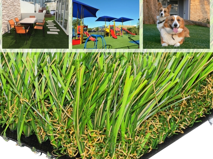 Beige, Emerald, Field Green, and Lime Green multi-colored blades with double-thatch cushioning create a visual effect that creates a perfect illusion of a natural lawn.