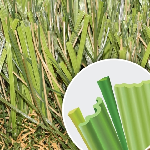 Using a popular fiber shape that acts as a type of memory foam; Super Natural-80 is able to resist being bent by foot traffic and quickly returns to its original shape. It's also been designed to repel heat, keeping turf temperature down. Double-colored blades offer extra density, resilience and an authentic look of natural turf. Coupled with two-color thatching, green and brown, Super Natural-80 is the most realistic turf on the market today.