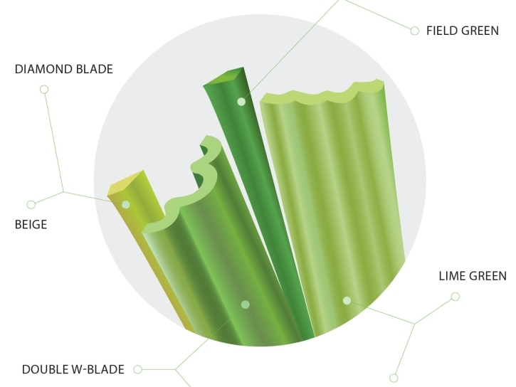 Beige, Emerald, Field Green, and Lime Green multi-colored blades with double-thatch cushioning create a visual effect that creates a perfect illusion of a natural lawn.